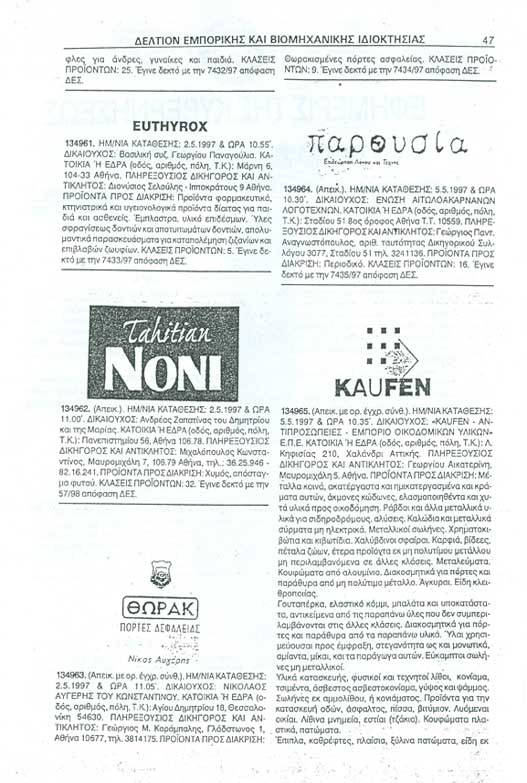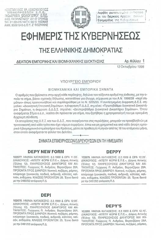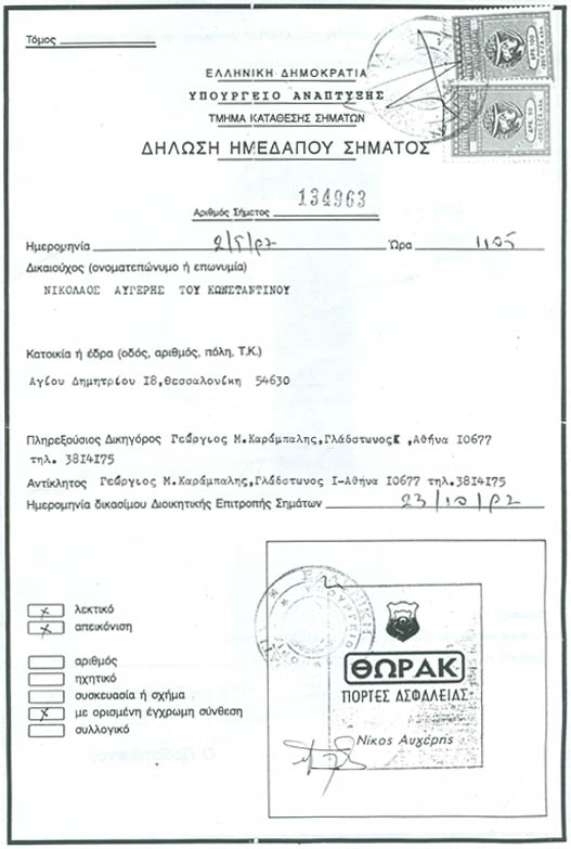 | Δήλωση Ημεδαπού Σήματος | Εφημερίς της Κυβερνήσεως | Πιστοποιητικό |